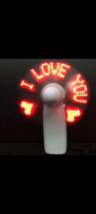 پنکه دستی شارژی ال ای دی نوشتاری آی لاو یو i love u